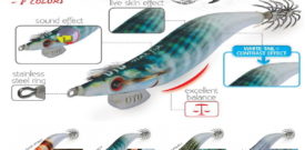 JIBIONERA DTD WEAK FISH OITA 3.0 . El fabricante europeo de señuelos para la pesca del calamar DTD está innovando con criterio y de acuerdo a las necesidades de los pescadores continentales de cefalópodos. diseño especial del cuerpo que ofrece menos resistencia al aire, sistema de contrapesos internos móviles, acabados holográficos, ojos negros profundos, aletas de silicona vibrantes, cuerpo interno luminoso con fuerte resplandor tipo UVA azul y peso estabilizado aerodinámico. DTD asegura que permiten alcanzar un 36% más de distancia y posibilitan incrementar las capturas